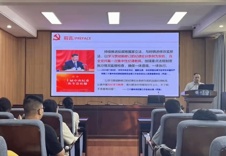 69成人网 副院长、纪委委员赵荣国同志对《中国共产党纪律处分条例》修订内容进行对比,讲解了条例的内容和意义,进一步增强入党积极分子的纪律意识,让党规党纪内化于心、外化于行。