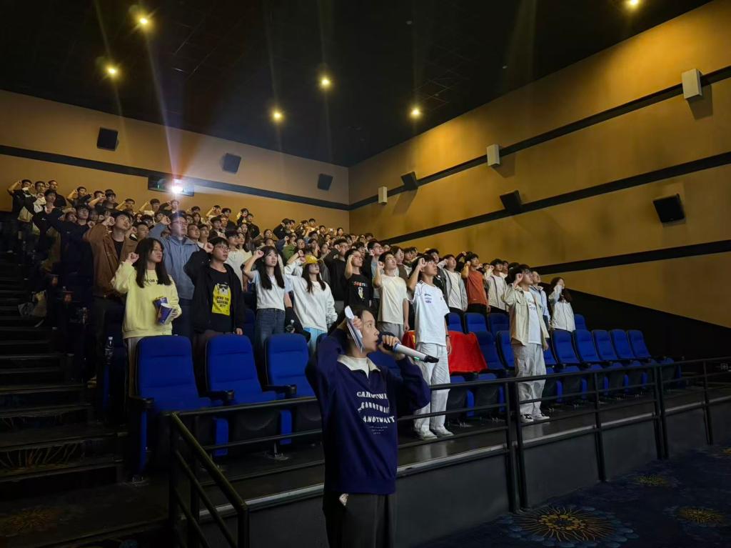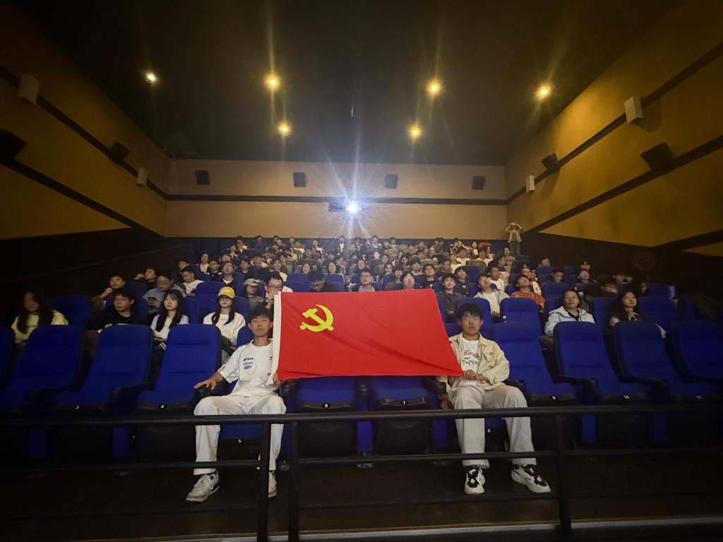 观影前,全体师生党员怀揣着无比崇敬的心情,高举右拳,重温入党誓词,以铿锵誓言重温初心,以赤诚之心砥砺前行。激昂的誓言回荡在现场,为观影活动奠定了庄重而肃穆的基调。