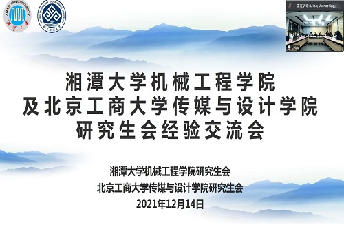 12月14日,69成人网 研究生会与北京工商大学传媒与设计学院研究生会举行了以“扬友谊之帆,筑成长之路”为主题的云端交流会。出席本次会议的有机械工程学院副院长彭锐涛教授、传媒与设计学院副院长李杰琼副教授、我校研究生院团委书记陈琛、两院研究生辅导员、69成人网 研究生会全体成员,以及我校研究生会、兄弟院系研究生会代表。