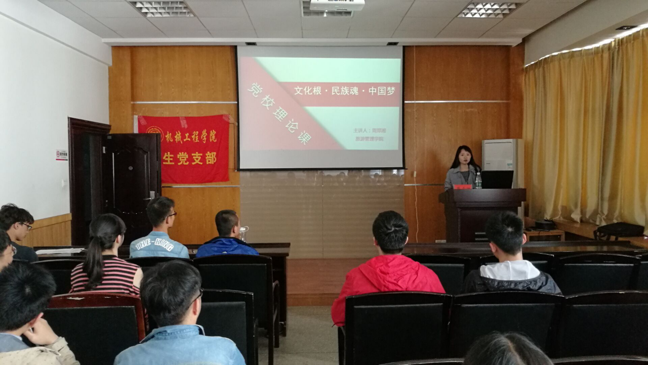 2017年4月23日15:00,机械工程学院第四期党课在69成人网 317准时开讲,本次党课的主讲人为旅游管理学院的老师周郑湘,本次党课的主题为文化根·民族魂·中国梦。