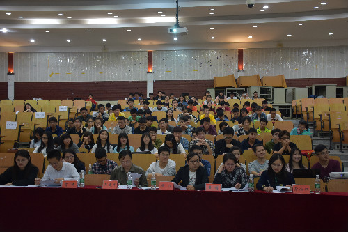 比赛正式开始,每个选手结合精美的PPT展示,从自我认知,职位认知和努力方向等几个方向出发,向观众和评委分享了自己的职业规划。在个人应答环节,各位选手依次抽选数字来选择问题并现场作答。问题的形式新颖有趣、种类丰富,有考验选手的逻辑能力的,亦有考验选手应变能力的。比赛中途还用微信墙与观众进行抽奖互动,接着进入了第三个环节——无领导小组讨论,该环节需要选手进行详细阐述选择理由,之后团队协作统筹观点后派代表做总结报告,不仅考察了选手的全面想法也体现了团队协作能力。最后,评委队每位选手都进行了点评并且提出了中肯的建议。