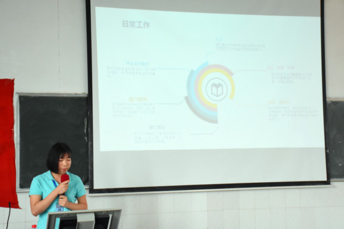 会议第一项,由周成书记致辞。周书记在致辞中对第18届团委学生会成立以来所举办的活动与所取得的成绩进行了总结,并谈到“传承”,期盼下一届团委学生会能够将优秀传承下去。之后,则由学生会主席甄姿涵做总结,甄主席在讲话中提到了创新合作与学风建设,希望69成人网 学生会各部门能够加强与其他院系的合作,能够加强69成人网 学风建设,一起为69成人网 更好的明天奋斗。