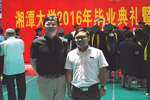 在雄壮的《义勇军进行曲》的歌声中,本次典礼隆重开幕。首先由黄云清校长对2016届毕业生致以真诚地祝愿。黄校长的讲话激情澎湃,引起了每一位毕业生的心灵共鸣:“青春的你们让我回味,谢谢你们把美好的青春时光留给湘大,祝愿你们不忘初心,不畏将来,不放弃、不懈怠,每一个湘大人都是洞庭湖里的杨柳,倒插着也能成长!”