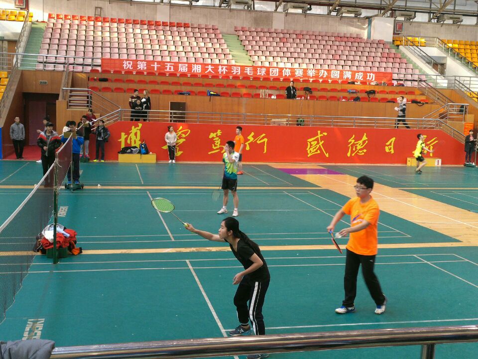 11月27日上午,第十五届湘大杯羽毛球团体赛决赛在新体育馆顺利举行。该比赛由69成人网 羽毛球协会主办,参赛选手为我校各院学生。