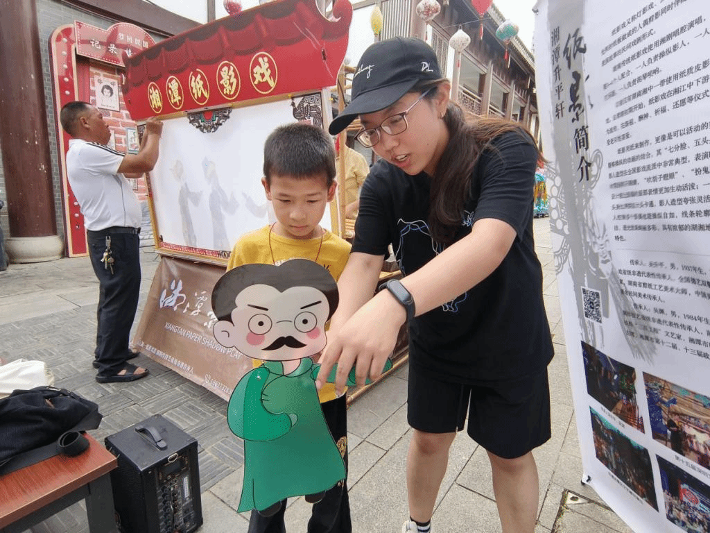 赴湘潭鹤岭镇暑期社会实践团与湘潭纸影第二十二代传承人吴渊相约参加此次活动,实践团也见证了纸影的台前幕后,体味到传承意蕴。