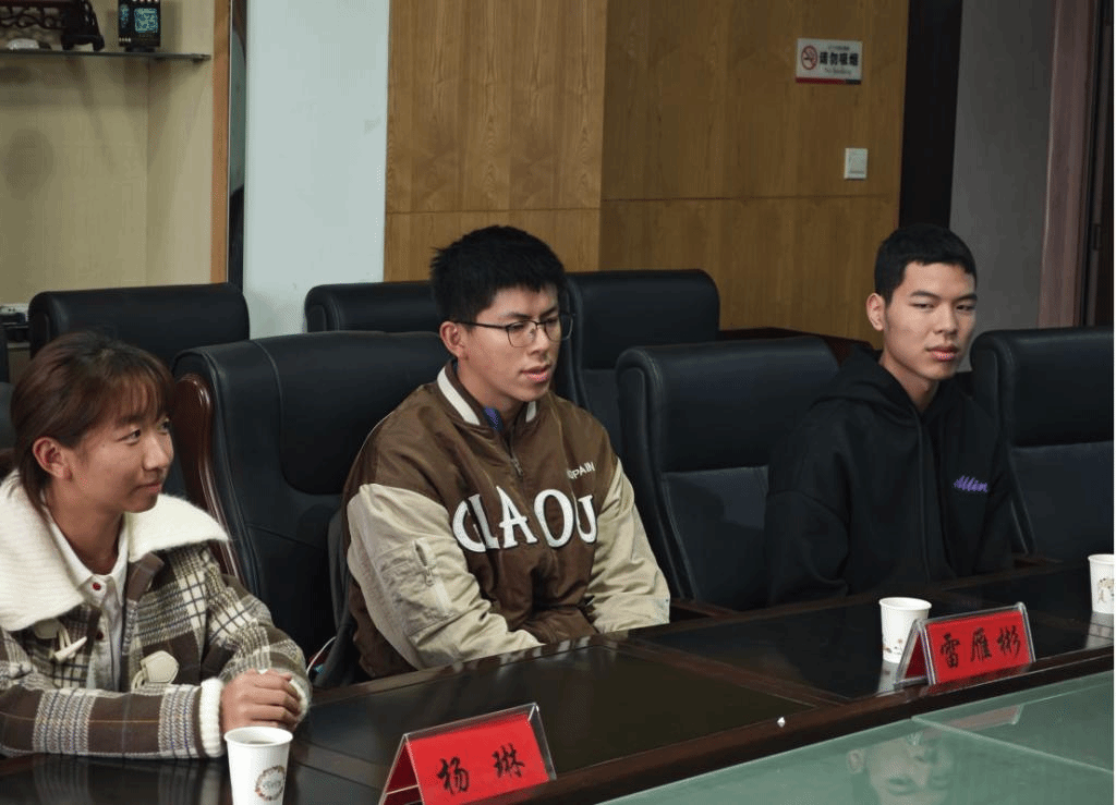 座谈会气氛热烈,四位同学从生活适应、专业学习以及未来规划等方面进行了简单的自我介绍。他们一致表示,会主动融入适应新环境,努力学习钻研新知识,以期在专业领域内获得更深入的理解和更全面的发展,为未来的学术或职业生涯打下坚实的基础。