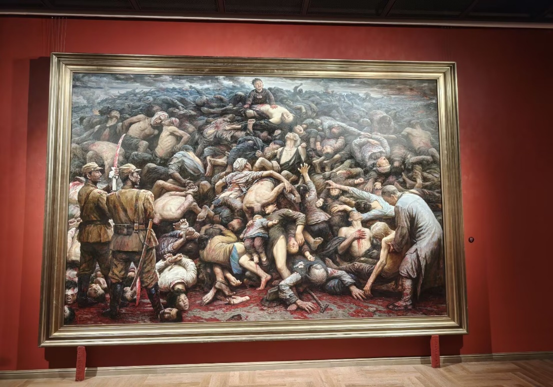 作为国际知名油画艺术家李自健先生打造的文化地标,李自健美术馆以“人性与爱”为主题,将湖湘文化特色与红色精神深度融合。实践团成员在馆方引导下,重点参观了《南京大屠杀》《乡土系列》等承载历史记忆的经典作品。通过影像资料与画作解析,团队系统学习了艺术家“以画笔镌刻民族记忆、传递革命精神”的创作历程。