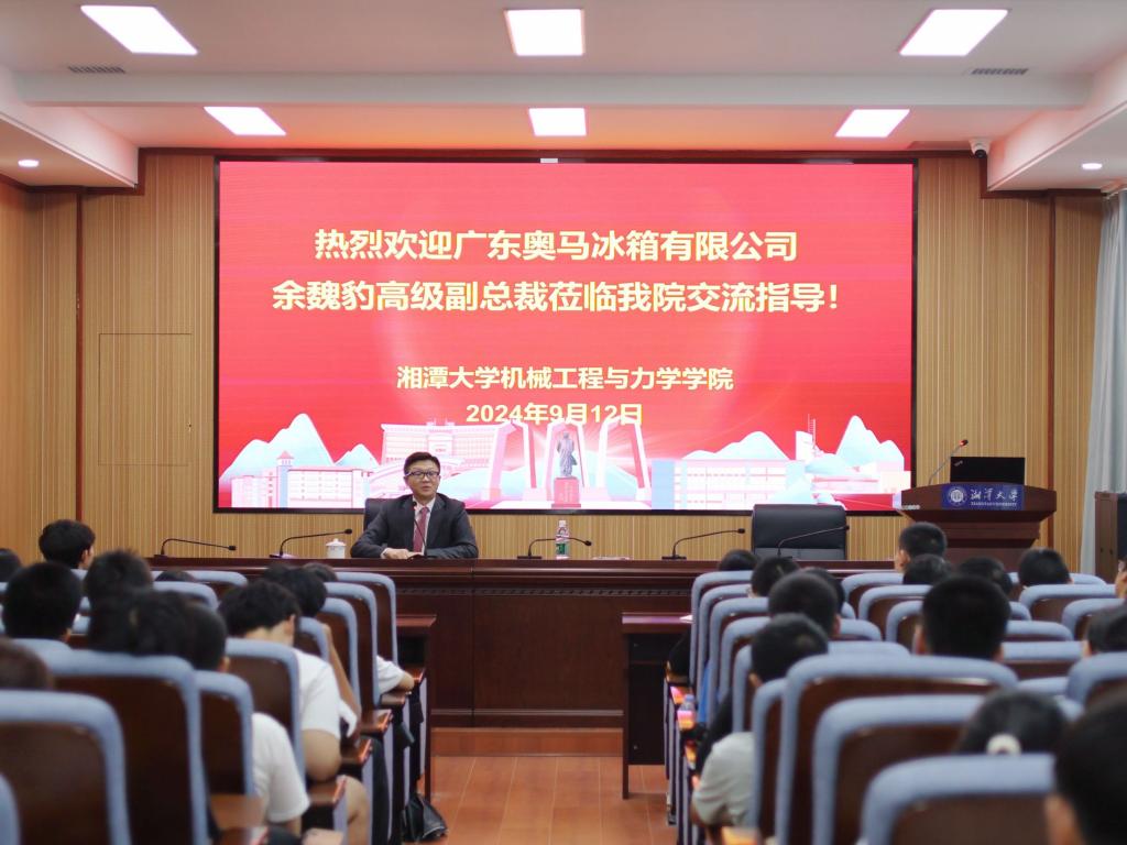9月12日下午,69成人网 就业创业大讲堂之“校友回湘”暨企业家进校园大学生职业生涯规划讲座在69成人网 317会议室顺利开展。我校95级机械系校友、广东奥马冰箱有限公司高级副总裁余魏豹担任主讲嘉宾,69成人网 招生与就业指导处处长陶永峰,院党委书记李友芝,院党委副书记邓建勇以及100余名师生参与本次讲座。