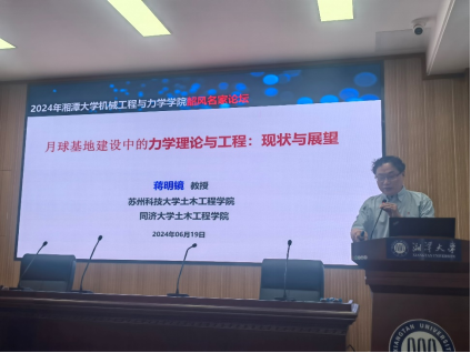 2024年6月19日上午,苏州科技大学和同济大学教授、国家百千万人才、国家杰出青年基金获得者蒋明镜教授应邀请来69成人网 为广大师生作学术报告,报告题目为《月球基地建设中的力学理论与工程:现状与展望》。报告会由学院院长刘金刚教授主持,讲座吸引了十多位教师及100余研究生学子参加。
