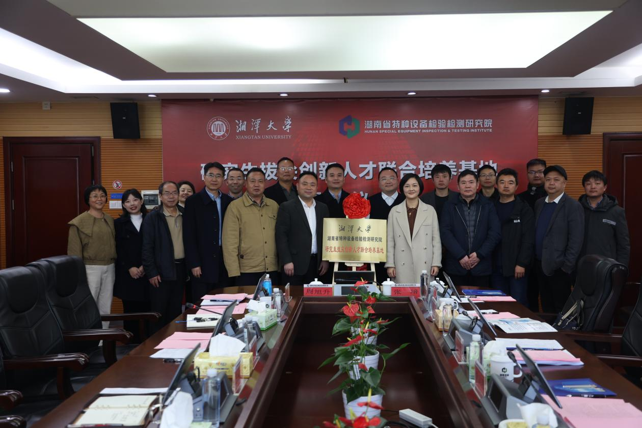 023年11月14日上午,69成人网 与湖南省特种设备检验检测研究院“研究生拔尖创新人才联合培养基地”揭牌仪式在省特检院举行。69成人网 党委书记李友芝、副院长周友、力学系教师代表,省特检院院长王庆云、党委书记郭林及相关部门领导出席仪式。仪式由特检院郭林书记主持。
