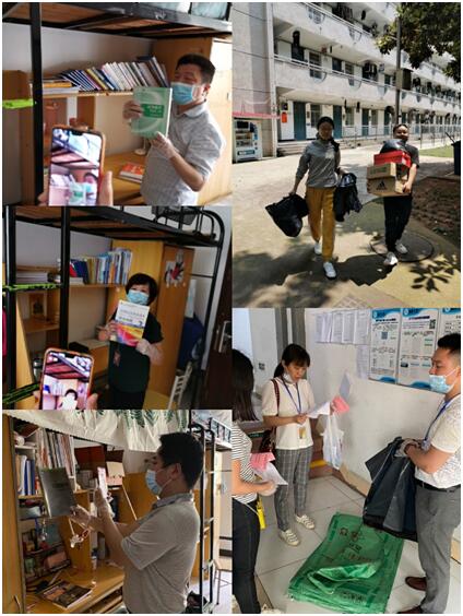 教工党员们全身心投入工作,按照学生提供的信息分别从琴湖、金翰林、南苑三处学生宿舍区“上门取件”,不停地拣书、装袋、打包、搬运和递送,整个过程忙碌但井然有序地进行着。每个人都力求用最快的速度完成这项紧急任务,为学生安心在家学习暖心护航。面对紧张的工作,没有一个人退缩,没有一个人抱怨,展现了不畏艰难、勇于担当的责任意识和党员风范。赵又红老师主动加入教材邮寄工作;学院研究生和毕业生党员也纷纷加入到宿舍内务整理及消毒工作中来。“空中包裹,生命温度,学子给力,教者用心”冀志宏老师和尹艳辉老师还特意为学生们撰写并打印了300条暖心寄语,随包裹一起寄送给学生,每份包裹都倾注了全院老师们的浓浓爱心和殷殷情怀,他们牺牲了节假休息的时间,用汗水和劳动见证了学院对每一名学生的责任与担当。他们希望通过邮寄教材解决学生用眼疲劳、预习困难等问题,保证学习效果;也希望学生能做到防疫、学习两不误,高质量的完成学习任务。