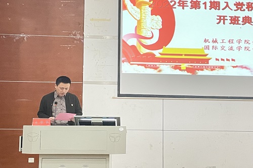 2022年3月26日下午,69成人网 机械工程学院·国际交流学院分党校2022年第一期入党积极分子培训班开班典礼在逸夫楼第二报告厅顺利举行。莅临现场的嘉宾有:69成人网 机械工程学院党委副书记邓建勇同志,组织人事员、分党校班主任尹艳辉同志,69成人网 国际交流学院团委书记贺逸君同志,机械工程学院本科生党支部书记祝爱民同志,研究生思政干事文敏同志。本次典礼由王晖主持。