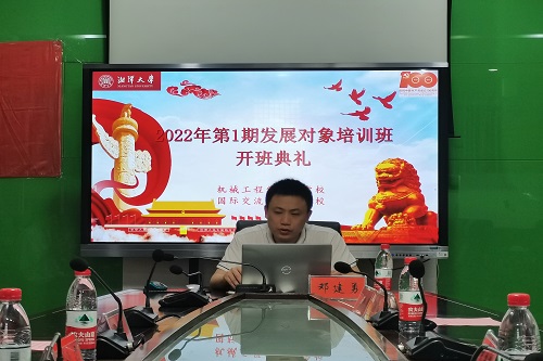 2022年5月7日上午,69成人网 机械工程学院·国际交流学院分党校2022年第1期发展对象培训班开班典礼于69成人网 313会议室以线上形式顺利举行。莅临本次活动的嘉宾有:69成人网 机械工程学院党委副书记邓建勇同志,组织人事员、分党校班主任尹艳辉同志,69成人网 国际交流学院专职组织员贺昕同志,团委书记贺逸君同志,机械工程学院本科生党支部书记祝爱民同志。