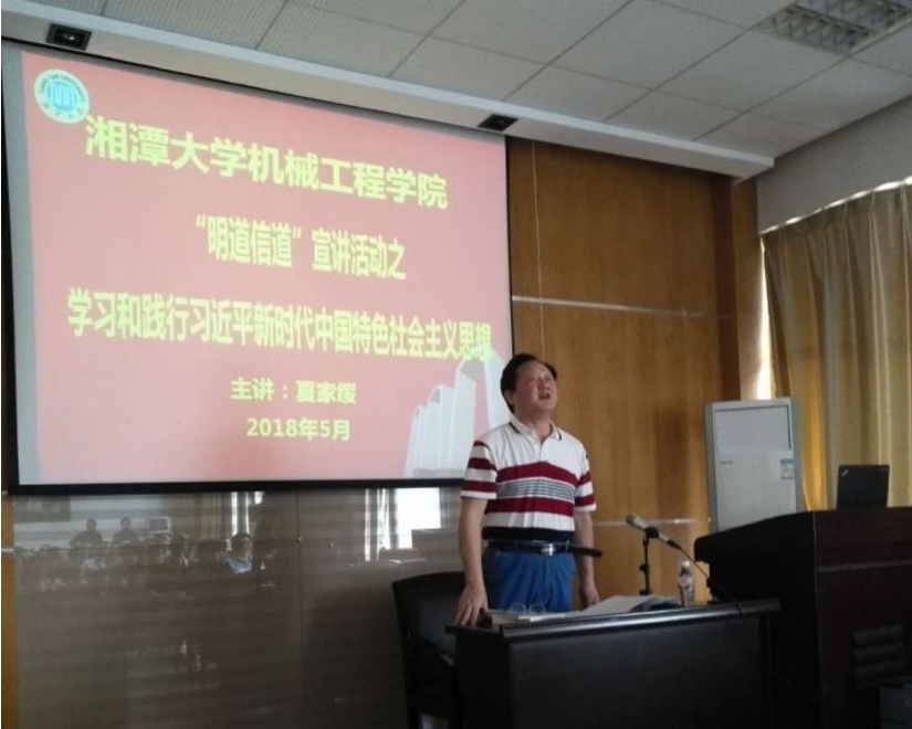 活动由机械工程学院党委书记丁琰同志主持,特邀原机械工程学院党委书记夏家绥同志主讲,夏书记就“学习和践行习近平新时代中国特色社会主义思想”的主题为我们进行了详细的深入浅出的讲解。
