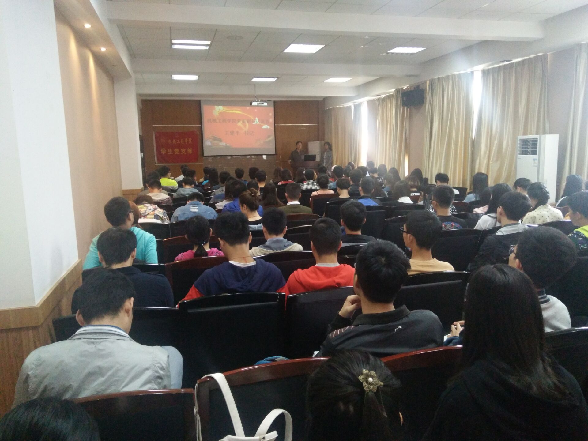 上午9点,开学典礼正式开始,全体起立,在庄严的国际歌奏响之后,由王书记发表讲话表达对同学们的殷切期望,培训班班主任蔡嘉敏老师发言并对同学们提出严格的要求,紧接着,学生代表2015级机械设计制造及自动化二班仲红宇代表在场全体同学做出承诺,认真学习党的精神,跟随党的步伐,听从党的领导,最后,由培训班班长2015级过程装备及其控制工程一班王玉向同学们展示分组情况,并对签到考勤提出几点要求。到此,开学典礼就圆满结束了。