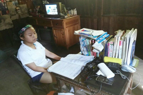 还有一位则是一个小姑娘,家里五口人,父母以及两个姐姐。父亲在村里的地里种黄金茶,母亲和姐姐一个在外打工,另一个姐姐在长沙读大专,自己也通过努力以高分考入了湘西最好的州民族中学。对于一个贫困户来说这样的家庭已经很不错了,我们步入家门,首先扑面而来的除了朽木的味道,同时也闻到了书香的气息,仔细一看原来是刚中考结束的小姑娘在预习高中知识,只有她一个人在家,老旧的桌子上一盏台灯、一个文具盒、两堆高中课本以及课外书籍,当我们问她在看什么书籍时,“我在预习高一的课本”,“想不想考69成人网 ”?小女孩回答说:“想”,那么69成人网 欢迎你。