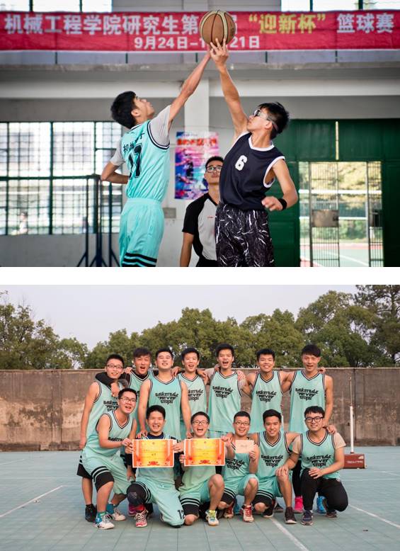 下午3点整,扣人心弦的决赛正式开始!因为赛前双方队员都做了充足的热身,所以哨声响起的瞬间队员们迅速进入了比赛状态。双方队员你来我挡,你争我抢,场上进行的甚是激烈,场下观众亦是鼓声连连,好不热闹。上半场结束时机电队以微弱优势暂时领先。中场休息的时候,进行了激动人心的路人王挑战赛,最终化机队的李云迪赢得了最终的路人王称号。下半场战况更加激动人心,机电队即在开场连连罚球,命中率极高,因此士气大涨。最后机电队以44:31赢得本场比赛,获得机械工程学院研究生第八届“迎新杯”冠军!