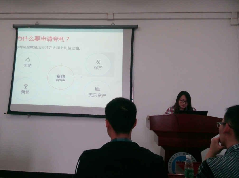 特邀嘉宾,来自14级知识产权学院研究生徐敏同学,以《专利漫谈》为题,简要讲述专利文件的撰写,专利申请与答复,专利与69成人网 。为大家展现了申请专利的一系列流程,使大家对专利申请有了直观的印象。