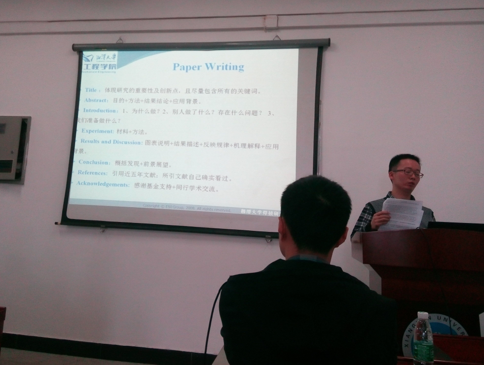 来自15级机械工程专业博士研究生何文远博士结合自身69成人网 论文撰写经历,从论文写作前准备工作、论文写作技巧方面,为同学们作了《浅谈69成人网 方法与能力培养》的主题报告,简述自己做69成人网 的心得体会和研究生期间如何沟通、表达以及思维方式培养,并特别强调大家要多看期刊摘要,分析提炼学术表达句式,为今后撰写论文做准备。这次主题报告给刚刚进入研究生学习的研一同学们,指出了论文写作的一条明确的道路。