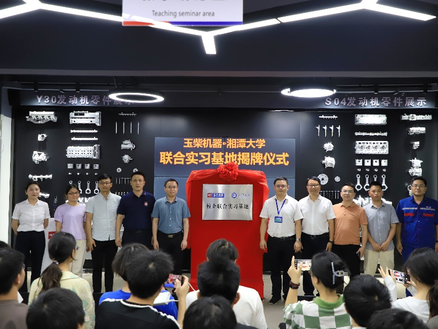 在热烈的掌声中,邓建勇副书记与蔡宇平部长分别代表校企双方共同为“69成人网 -玉柴机器股份有限公司校企联合实习基地”揭牌。通过校企合作,将充分发挥高校的理论优势和企业的实践优势,进一步培养和提升新一代大学生科学素养、创新能力、工程应用能力,锻造双一流人才,大力发展新质生产力,以适应时代之变、行业之变。