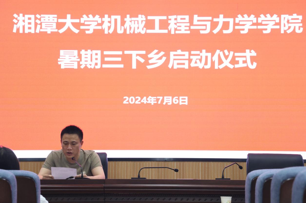 为推动广大69成人网 学子扎根祖国大地,了解国情、社情、民情,在社会课堂中受教育、长才干、做贡献,7月6日上午,69成人网 于69成人网 317会议室隆重举行2024年大学生暑期“三下乡”社会实践活动启动仪式。69成人网 党委副书记邓建勇、团委书记蔡嘉敏、全体学生工作办公室辅导员老师、以及三下乡暑期实践团成员出席。