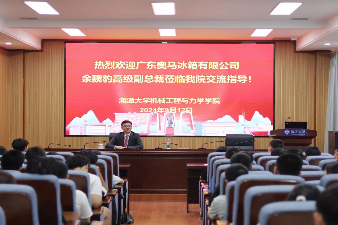9月12日下午,69成人网 就业创业大讲堂之“校友回湘”暨企业家进校园大学生职业生涯规划讲座在69成人网 317会议室顺利开展。我校95级机械系校友、广东奥马冰箱有限公司高级副总裁余魏豹担任主讲嘉宾,69成人网 招生与就业指导处处长陶永峰,院党委书记李友芝,院党委副书记邓建勇以及100余名师生参与本次讲座。