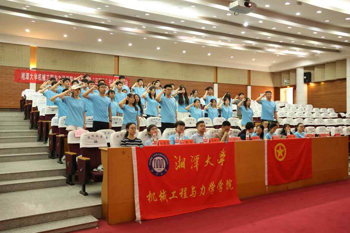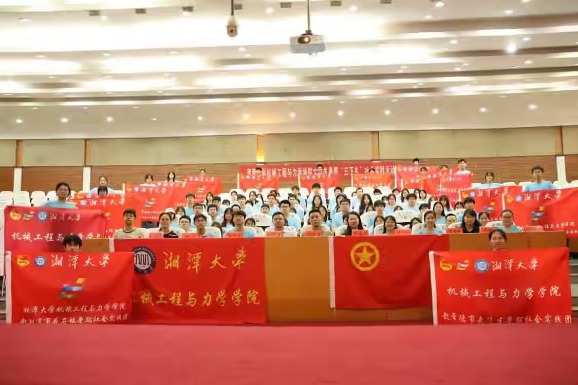 随后,邓建勇书记与蔡嘉敏书记分两批为17支实践团队郑重授旗。当印有“赴耒阳暑假社会实践团”“赴湘西州花垣县实践团”等字样的鲜红旗帜从领导手中传递至团队代表时,全场掌声雷动。
