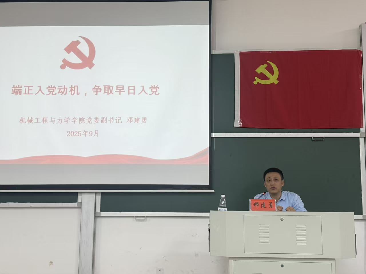 开班典礼上,69成人网 党委副书记邓建勇发表讲话并授课,他指出入党积极分子要主动接受党组织的考验,加强党的理论知识学习,做到以学笃行,成为一名信念坚定、知行合一的新时代大学生。同时,他以“端正入党动机,争取早日入党”为题进行授课,引导学员将个人理想融入党的宗旨与民族复兴伟大事业。