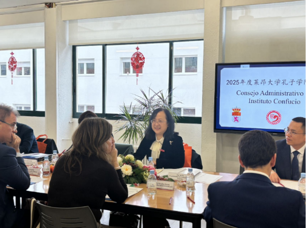 随后,葛飞与努里娅及两校孔子学院理事会成员共同出席了莱昂大学孔子学院第十三届理事会。会议审议通过了莱昂大学孔子学院2025年度工作总结与2026年度工作计划,全面回顾了2025年孔子学院在中文教学、科学研究、文化传播等方面的工作成效,围绕2026年课程创新、品牌活动打造等议题进行深入研讨,明确了未来发展方向,为莱昂大学孔子学院高质量发展筑牢根基。