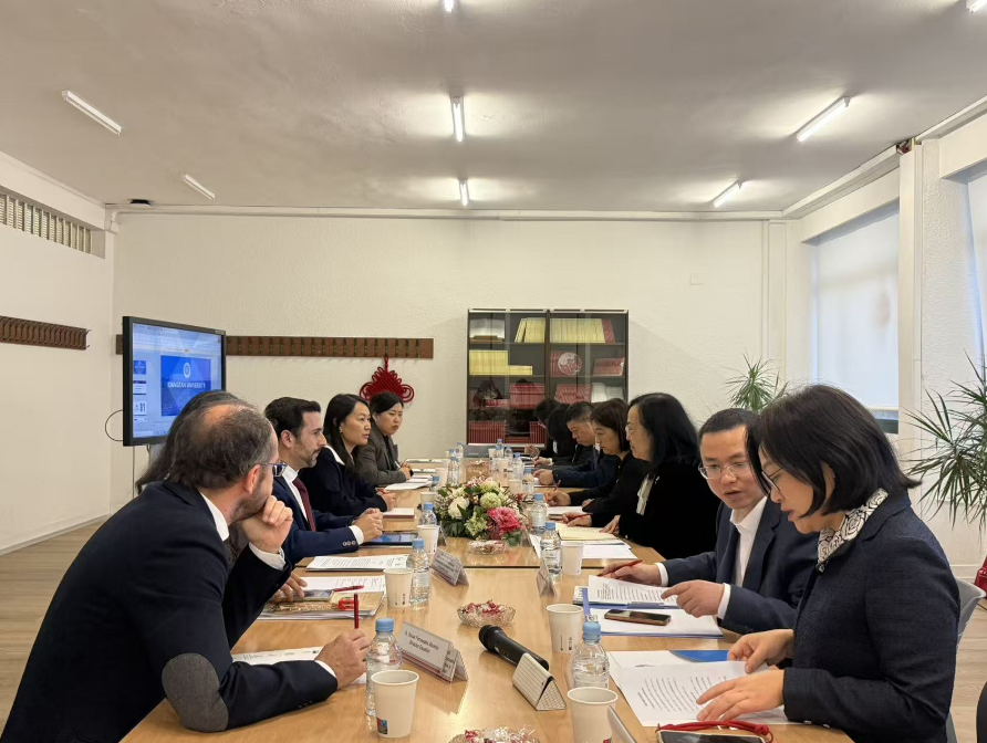 在葡萄牙里斯本大学,代表团与副校长若昂・佩绍托(Joao Peixoto)、理学院副院长克里斯蒂娜・马格斯(Cristina Maguas)等校方代表开展座谈。双方各自介绍了学校办学特色、优势学科布局及人才培养理念,重点围绕环境科学、机械工程、人工智能、金融学等领域的合作模式、联合培养、69成人网 协作等方面进行了深入交流。此外,代表团还访问了里斯本大学孔子学院,就中文国际教育的数智化发展进行了交流。