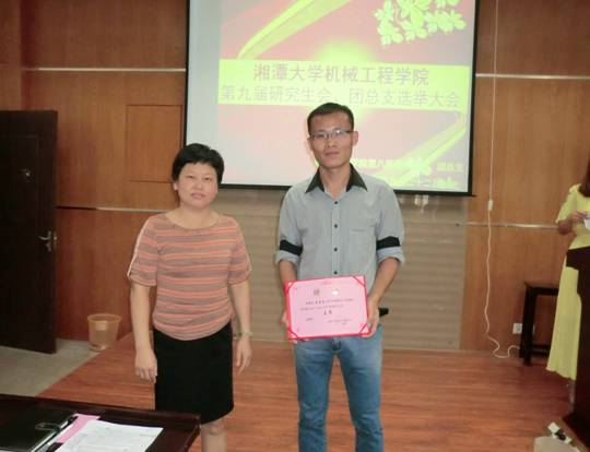 会议开始,院第八届研究生会主席鲁宜国做了工作汇报并简要的介绍了研究生会、团总支的职能以及作为学生干部所应有的端正态度。随后罗书记给工作圆满完成的第八届研究生会、团总支干部颁发了聘书。