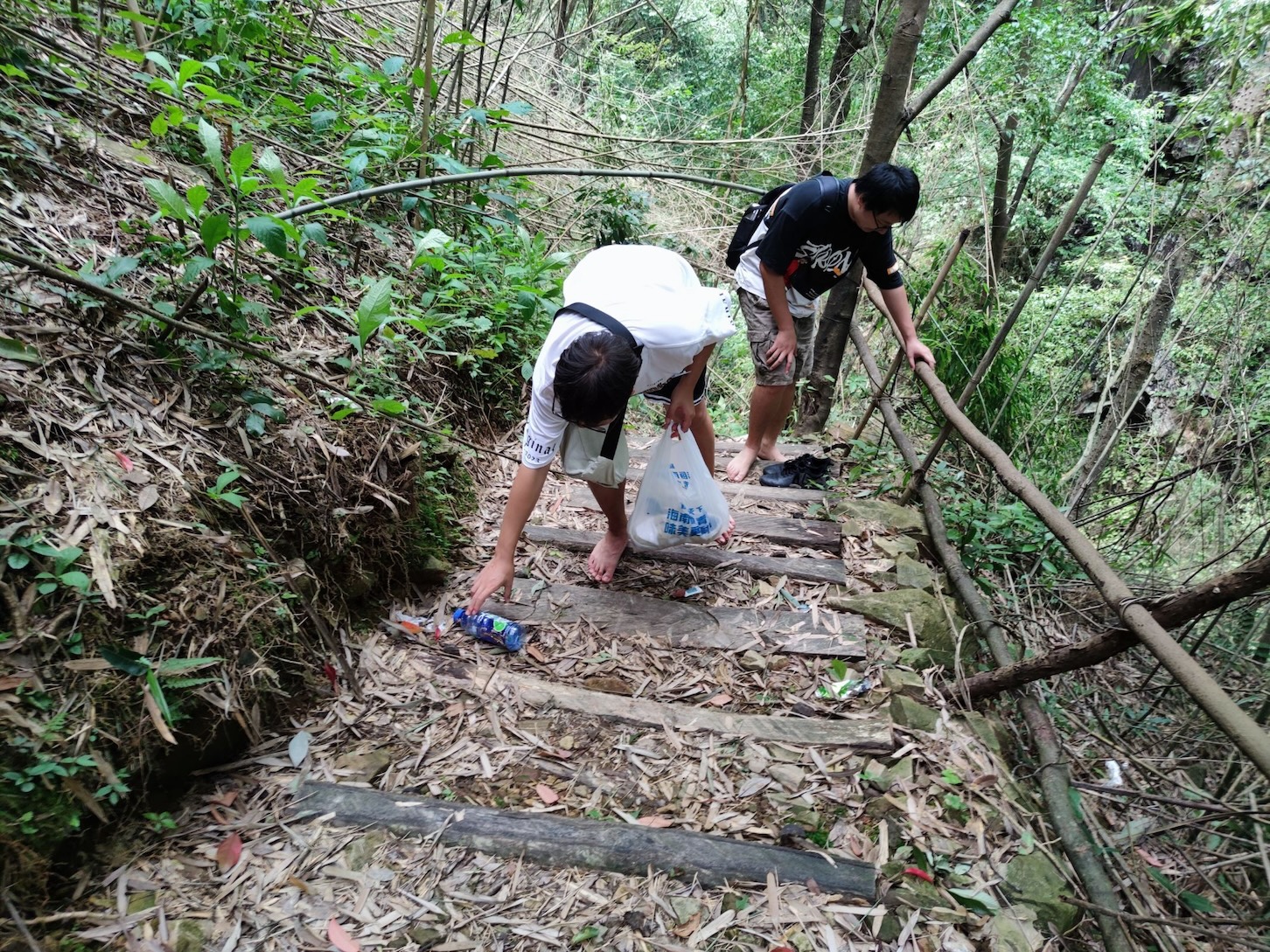 为了保护三道坑自然保护区的优美景色,在登山途中,实践团成员自发行动起来,将这些沿途的垃圾都装入袋中,还原其最真实的美貌。除此之外,实践团成员还对当地旅客进行了调研,呼吁旅客不仅要看美景,更要保护美景,为旅客们普及保护自然的重要性。