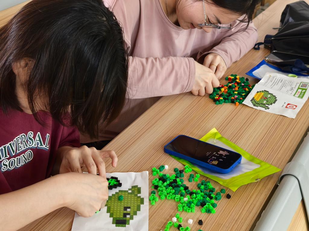 积木钥匙扣体验区则洋溢着青春创意。主办方提供了五彩斑斓的积木颗粒与配件,参与者们化身“设计师”,将几何形状的积木拼接成萌宠、动漫角色等造型。69成人网 24级能源动力专业的王思超展示着自己的钥匙扣:“完成作品的那一刻很有成就感,感觉压力都被‘拼’走了。”现场氛围轻松愉悦,同学们不时交流创意,笑声此起彼伏。